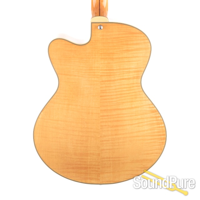 Master luthier Bill Comins stuns us with his 16" spruce/Flame maple archtop with a custom wound Kent Armstrong pickup.