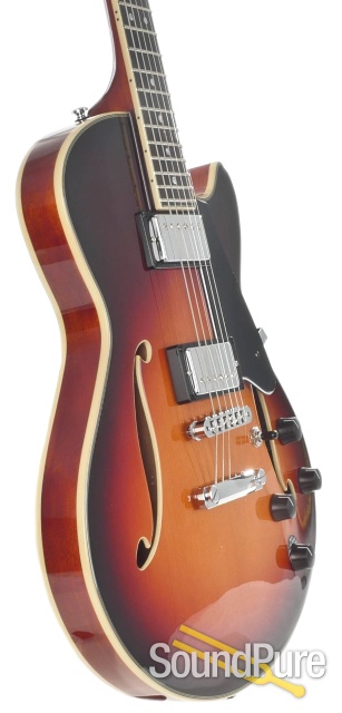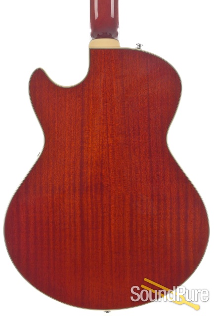 This guitar has a full, woody tone with some great punchiness. This is truly a great buy for the price. The spruce top and ebony fretboard combination (the 'ES' in 'GCS-1ES') is absolutely killer for some of the warmer, rounder tones you might expect from a full hollowbody, but with the clarity and focus of a semi-hollow guitar. The smooth ebony fretboard also contributes to a creamy but detailed sound that lends itself very well to chord melody and colorful harmonies. Bill Comins always provides these instruments with the same setup and fretwork that adorns his higher-end archtops, and as a result the GCS-1s share the same exceptional level of playability. Contact Sound Pure today for more information!