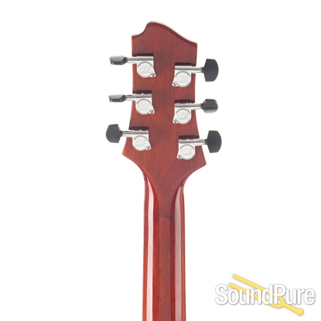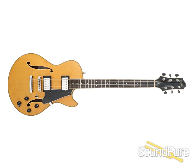 The GCS-1 is a solidly built semi-hollow guitar designed for musicians looking for a well-made practical and roadworthy musical instrument. Inherently versatile, it can produce a myriad of tonalities suitable for blues, rock, country, and jazz playing. It adorns a laminated flame Maple top with a laminated Sapele back, and the sides/internal block structure are routed from a solid wood core. This design yields a balanced and even articulation with enhanced sustain characteristics. Included is a TKL hard-shell case. A version with a U.S. made Bigsby vibrato is also available.