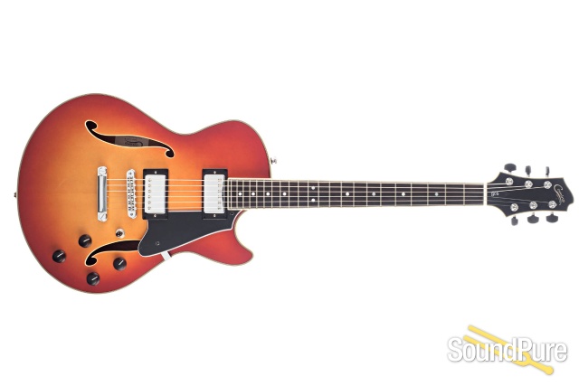 The GCS-1 is a solidly built semi-hollow guitar designed for musicians looking for a well-made practical and roadworthy musical instrument. Inherently versatile, it can produce a myriad of tonalities suitable for blues, rock, country, and jazz playing. It adorns a laminated flame Maple top with a laminated Sapele back, and the sides/internal block structure are routed from a solid wood core. This design yields a balanced and even articulation with enhanced sustain characteristics. Included is a TKL hard-shell case. A version with a U.S. made Bigsby vibrato is also available.