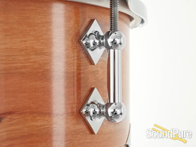 A visually stunning wood, this Craviotto cherry drum set has an attractive tight grain pattern with a nice warm hue. Caught somewhere between mahogany and walnut in terms of density, this shell exudes articulation, warmth, and presence. Whether you play at low or high volume levels, notes are crisp and exact from the center all the way out to the edges. As with most Craviotto drums, tuning is easy and won't take you long to find your new happy place. Complimented with matching cherry reinforcing rings and 45-degree bearing edges, this set has all the makings of a "modern vintage" sound.
