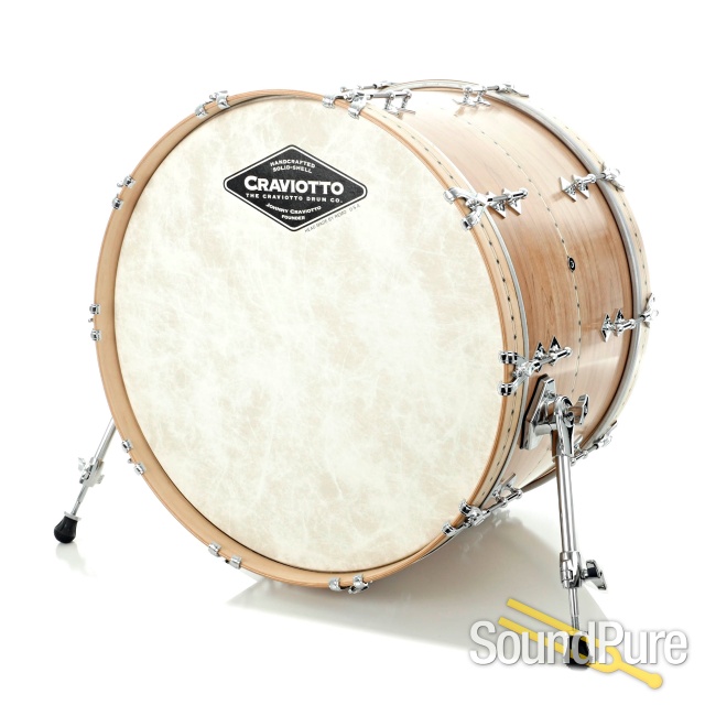 A visually stunning wood, this Craviotto maple drum set has an attractive tight grain pattern with the classic maple tone. The finish is simple and elegant, allowing the inlay and natural grain of the maple shell with matching reinforcing rings to reveal themselves. The classic tube lugs tune easily and hold tune easily as well Whether you play at low or high volume levels, notes are crisp and exact from the center all the way out to the edges. As with most Craviotto drums, tuning is easy and won't take you long to find your new happy place. Complimented with matching maple inlays and 45-degree bearing edges, this set drum has all the makings of a "modern vintage" sound.