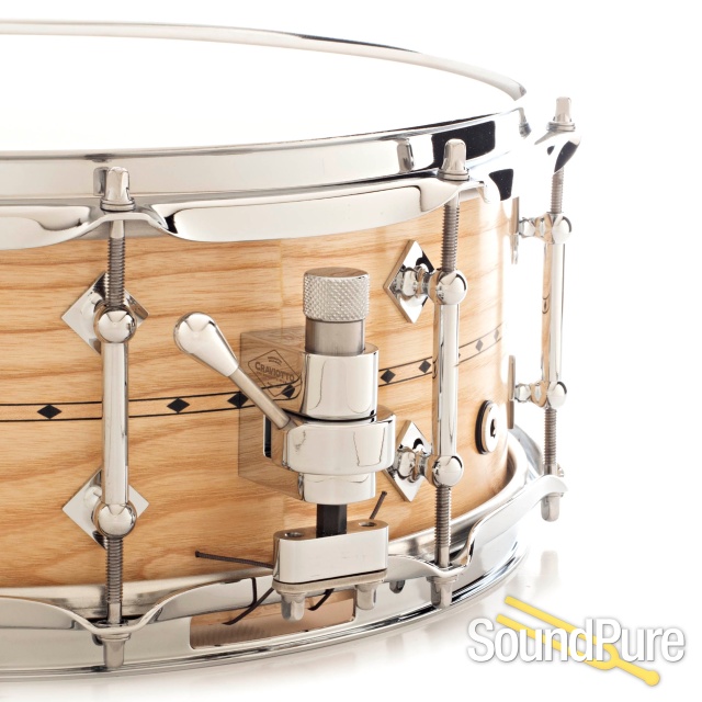 This Craviotto custom snare drum is simple and elegant with a satin finish allowing the natural flowing grains of the ash body to show through. The classic tube lugs tune easily and hold tune easily as well. It also is equipped with the Trick throw-off, which has really become the industry standard for custom companies. Since their inception in 1990, Craviotto drums have been considered some of the most sought-after instruments in the world. It is their master craftsmanship and commitment to quality that has set their work apart from all of the rest. Once you hit one of these incredible drums, you'll see why it's no wonder so many players go to Craviotto to find their sound.