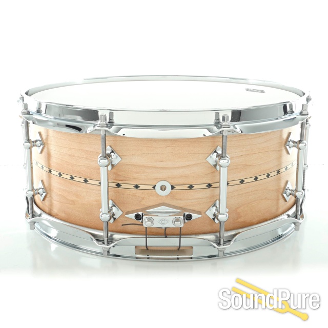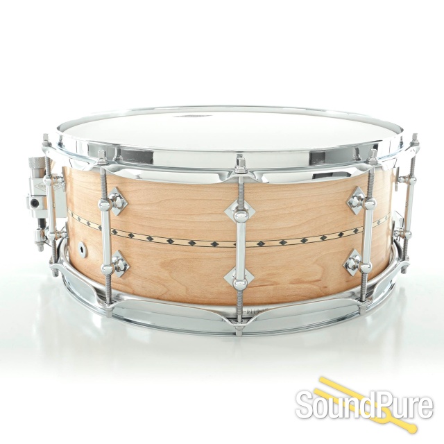 This Craviotto Custom Maple snare drum delivers excellent attack and quick decay in an un-assuming package. Outfitted with 45-degree bearing edges, this snare has great definition in multiple tuning ranges. The finish is simple and elegant, allowing the inlay and natural grain of the maple shell with matching reinforcing rings to reveal themselves. The classic tube lugs tune easily and hold tune easily as well. It also is equipped with the Trick throw-off, which has really become the industry standard for custom companies. Since their inception, Craviotto drums have been considered some of the most sought-after instruments in the world. It is their craftsmanship and commitment to quality that has set their work apart from all of the rest. Once you hit one of these incredible drums, you'll see why it's no wonder so many players go to Craviotto to find their sound.