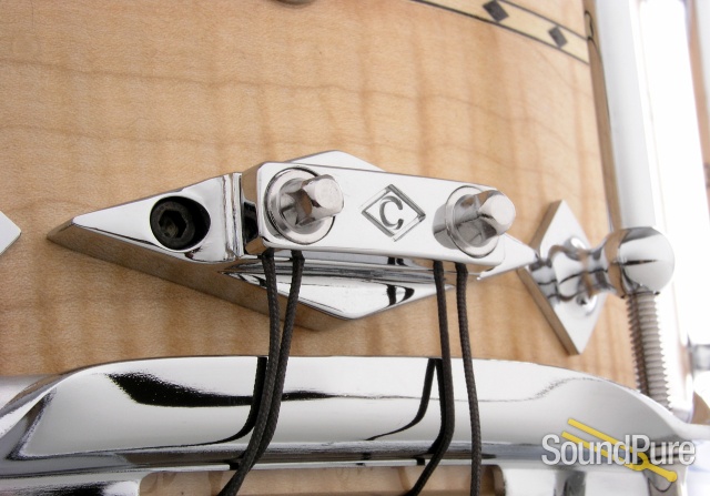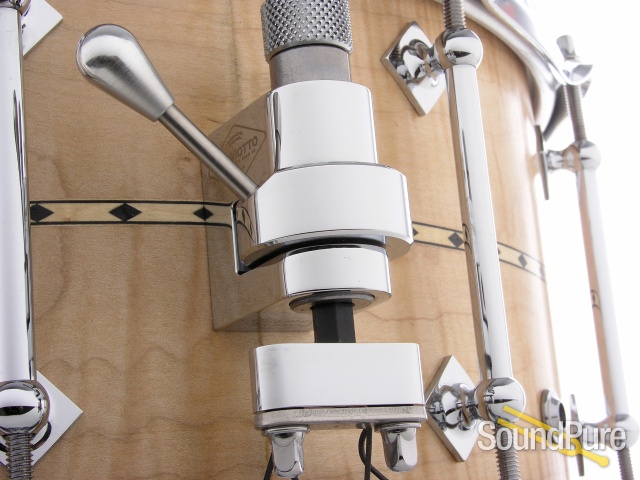 This Craviotto Custom Curly Maple snare drum has amazing looks and sound. The maple delivers excellent attack and quick decay. Outfitted with 45-degree bearing edges, this snare has great definition in multiple tuning ranges. The finish is simple and elegant, allowing the inlay and natural grain of the curly maple shell with matching reinforcing rings to reveal themselves. The classic tube lugs tune easily and hold tune easily as well.  It also is equipped with the Trick throw-off, which has really become the industry standard for custom companies.