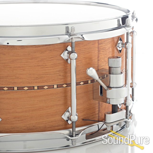 The Custom Shop Snare Drums are the flagship drums of the Craviotto Drum Company, and consist of high performance, highly collectible Solid Shell snare drums. Available in Ash, Maple, Cherry, Poplar, Walnut or Mahogany (or any Stacked Solid combination thereof), with an optional Maple, Cherry or Walnut inlay, each Custom Shop Snare Drum features a hand-selected, handcrafted shell and gleaming chrome-plated hardware along with premium-quality components including Craviotto’s chrome over brass machined “Diamond” tube lugs, Remo Ambassador drumheads and Craviotto Deluxe Snare Wires. All drums come with a chrome Trick GS007 strainer. Options include a choice of heavy-gauge (2.3mm) triple-flanged or diecast counterhoops and natural satin oil or high-gloss lacquer finish.