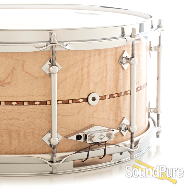 The Custom Shop Snare Drums are the flagship drums of the Craviotto Drum Company, and consist of high performance, highly collectible Solid Shell snare drums. Available in Ash, Maple, Cherry, Poplar, Walnut or Mahogany (or any Stacked Solid combination thereof), with an optional Maple, Cherry or Walnut inlay, each Custom Shop Snare Drum features a hand-selected, handcrafted shell and gleaming chrome-plated hardware along with premium-quality components including Craviotto’s chrome over brass machined “Diamond” tube lugs, Remo drumheads and Craviotto Deluxe Snare Wires. All drums come with a heavy-duty, and chrome Trick GS007 strainer.
