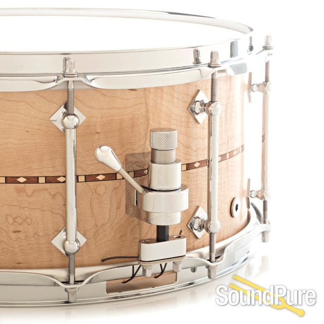 This Craviotto Private Reserve Curly Maple snare drum has amazing looks and sound. The maple delivers excellent attack and quick decay. Outfitted with 45-degree bearing edges, this snare has great definition in multiple tuning ranges. The finish is simple and elegant, allowing the natural grain of the curly maple shell with matching reinforcing rings to reveal themselves. The classic tube lugs tune easily and hold tune easily as well. It also is equipped with the Trick throw-off, which has really become the industry standard for custom companies. Since their inception, Craviotto drums have been considered some of the most sought-after instruments in the world. It is their master craftsmanship and commitment to quality that has set their work apart from all of the rest. Once you hit one of these incredible drums, you'll see why it's no wonder so many players go to Craviotto to find their sound.