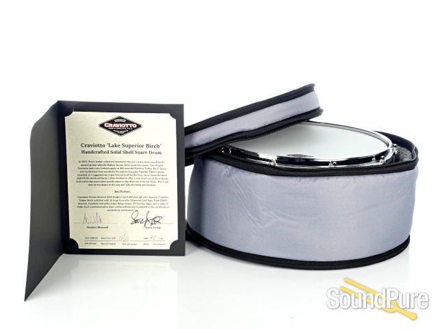 In this particular case, this 6.5x14 Timeless Timber Red Birch solid shell with matching reinforcing rings is one of the limited timbers destined to be one of the unique Craviotto finds to be released into the wild. This wood is part of the same Lake Superior Timeless Timber released by the Craviotto company from 1999 - 2002.