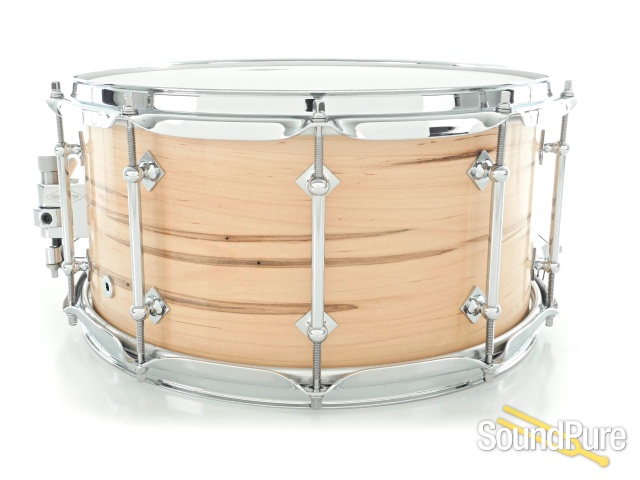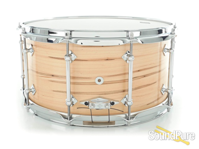 This Craviotto Custom Ambrosia Wormy Maple snare drum delivers excellent attack and quick decay in an un-assuming package. Outfitted with 45-degree bearing edges, this snare has great definition in multiple tuning ranges. The finish is simple and elegant, allowing the inlay and natural grain of the maple shell with matching reinforcing rings to reveal themselves. The classic tube lugs tune easily and hold tune easily as well. It also is equipped with the Trick throw-off, which has really become the industry standard for custom companies. Since their inception, Craviotto drums have been considered some of the most sought-after instruments in the world. It is their craftsmanship and commitment to quality that has set their work apart from all of the rest. Once you hit one of these incredible drums, you'll see why it's no wonder so many players go to Craviotto to find their sound.