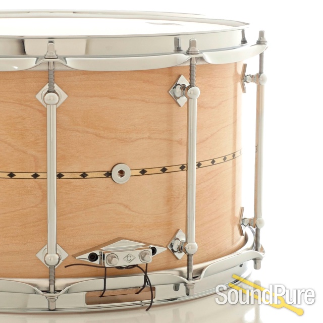 This Craviotto Custom Maple snare drum delivers excellent attack and quick decay in an un-assuming package. Outfitted with 45-degree bearing edges, this snare has great definition in multiple tuning ranges. The finish is simple and elegant, allowing the inlay and natural grain of the maple shell with matching reinforcing rings to reveal themselves. The classic tube lugs tune easily and hold tune easily as well. It also is equipped with the Trick throw-off, which has really become the industry standard for custom companies. Since their inception, Craviotto drums have been considered some of the most sought-after instruments in the world. It is their craftsmanship and commitment to quality that has set their work apart from all of the rest. Once you hit one of these incredible drums, you'll see why it's no wonder so many players go to Craviotto to find their sound.