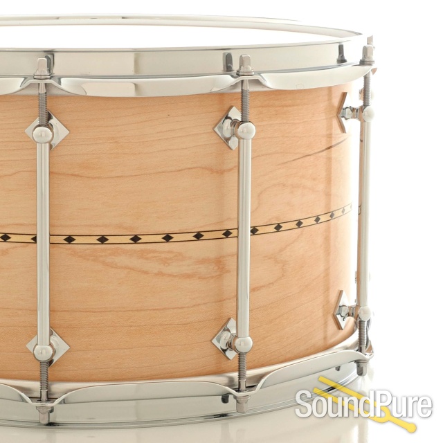 The Custom Shop Snare Drums are the flagship drums of the Craviotto Drum Company, and consist of high performance, highly collectible Solid Shell snare drums. Available in Ash, Maple, Cherry, Poplar, Walnut or Mahogany (or any Stacked Solid combination thereof), with an optional Maple, Cherry or Walnut inlay, each Custom Shop Snare Drum features a hand-selected, handcrafted shell and gleaming chrome-plated hardware along with premium-quality components including Craviotto’s chrome over brass machined “Diamond” tube lugs, Remo drumheads and Craviotto Deluxe Snare Wires. Options include a choice of heavy-gauge (2.3mm) triple-flanged Vintage style straight or diecast counterhoops and natural satin oil or high-gloss lacquer finish.