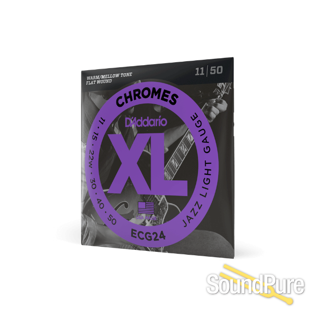 ECG24, D'Addario's best selling gauge of flatwound strings, delivers a balance of smooth feel, warm/mellow tone and optimal tension, ideal for traditional jazz, rockabilly twang, R&B and some pop/rock styles.