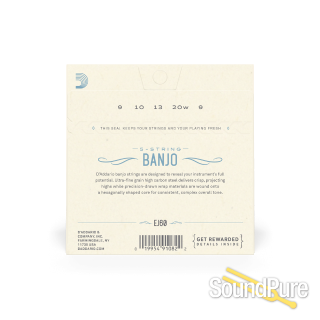 EJ60, one D'Addario's best selling 5-string banjo sets, offers light playing tension for comfortable playing feel and brilliant tone. Loopend construction for universal fit.