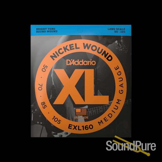 XL Nickel are the industry standard in electric bass strings. With their clear fundamentals, booming tight lows, and reliable D’Addario construction, they’re trusted by players everywhere to handle any performance. XL Nickel bass strings are made with a high carbon steel core and wound with nickel-plated steel wrap wire, for consistently bright tone and smooth playability, great for a wide variety of bass styles. 50-105 Medium strings have a higher tension, affording increased low-end response and output.