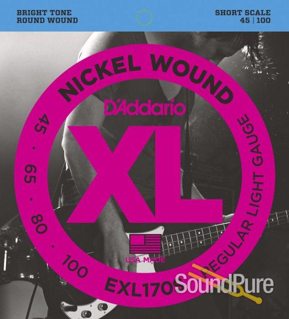 D'Addario EXL170S Regular Light Nickel Wound Short Electric Bass Strings are produced with a nickel-plated steel wrap, which delivers excellent magnetic output and a clear tone. XL electric bass strings provide a smooth, comfortable surface that reduces premature fret wear.