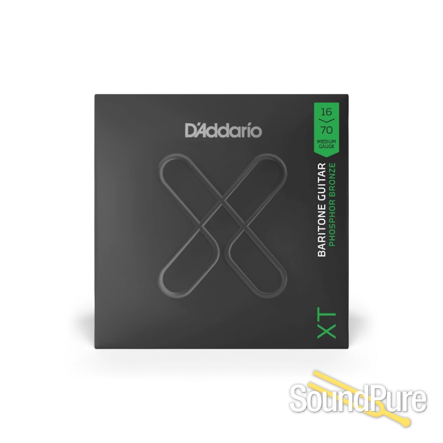 Since D'Addario introduced Phosphor Bronze strings in 1974, they've been synonymous with warm, well-balanced tone. XT Phosphor Bronze baritone guitar strings offer that and more, boasting enhanced break resistance, better pitch stability, and longer life than standard baritone strings. The XT coating delivers advanced corrosion resistance, while still retaining the warm tone and natural feel of the uncoated string. Beneath the coating, these XT baritone guitar strings are constructed with a NY Steel core, phosphor bronze wrap wire, and Fusion Twist technology, affording tonal versatility with added resilience. This 16-70 gauge baritone set is optimized for baritone acoustic guitars.