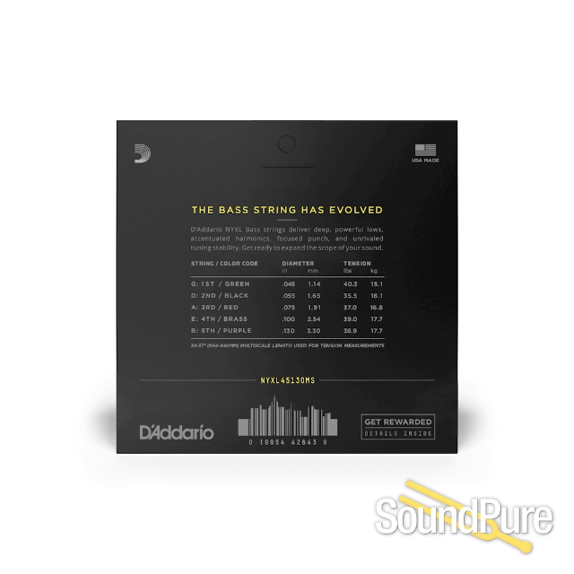 NYXL bass guitar strings thump harder, bend farther and sound thicker than any bass string you’ve played before. As our premium uncoated bass string, NYXL bass strings provide higher break strength, enhanced tuning stability, and accentuated harmonics where it counts. Using a NY Steel core, Fusion Twist technology, and premium nickel-plated steel wrap wire, with a reengineered core-to-wrap ratio, NYXL bass guitar strings deliver extra versatility, familiar feel, and a boosted tone that’ll expand the scope of your low-end. Made for 5-string fanned fret basses, this 45-130 Regular Light Multiscale set provides players with an extremely versatile, multiscale string, in our most popular string gauge.