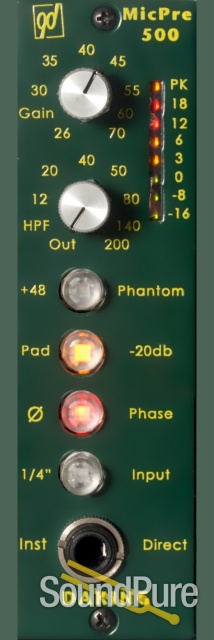 In addition, because the home recordist faces challenges that the professional studio owner does not, the Mic-Pre One 500 features a powerful continuously variable high-pass filter with a range of 10-200Hz @ 12db per octave