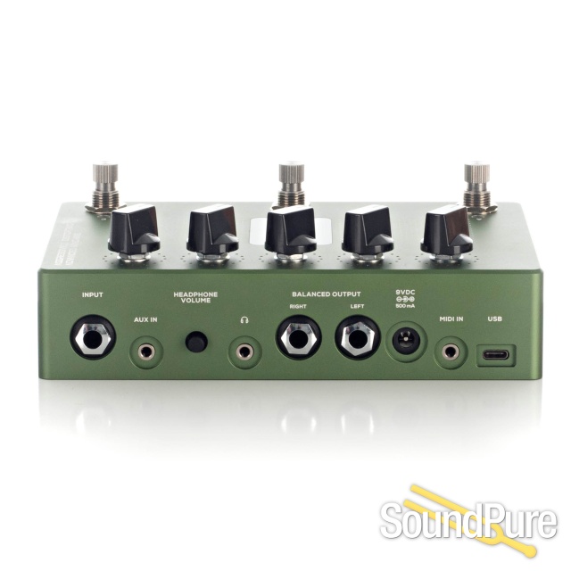 The Aggressively Distorting Advanced Machine has three fully programmable rotating footswitch presets. Each of these stores your unique blend of compression, distortion, impulse responses, EQ parameters, and signal chain settings. Featuring a unique and innovative top-notch precision touch slider interface, for its 6-band programmable EQ.
