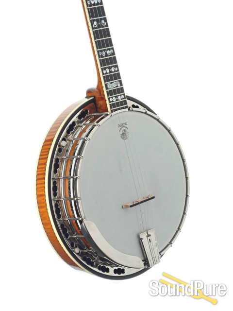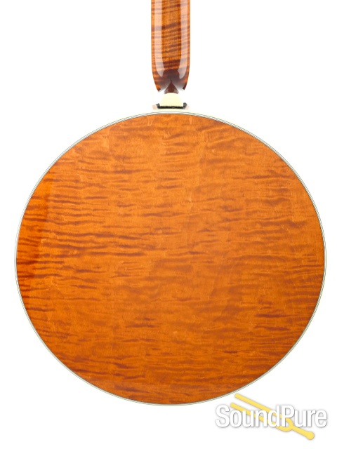 A premium quality world class 5-string banjo that is appreciated for its crisp tone with great highs and distinctive bass response. The Calico is not only beautiful, but it is also exceptionally dynamic with both powerful sound and response providing an excellent tool for all styles of music. At this price point we add two features, we taper the inside of the resonator walls for added projection of tone, and we also add the feature of glued-in frets. Each fret is fitted to the fingerboard and glued in place so that in the future when the frets are worn out, they can easily be replaced without chipping the fingerboard. You will gain these benefits on every model from the Calico on up the line.