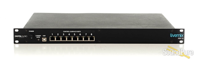 8 front panel ethernet ports provide power and mix capabilities to up to 16 personal monitor mixes. This can be through 8 dual mix CS-DUO units, 16 single mix CS-SOLOs or a combination.