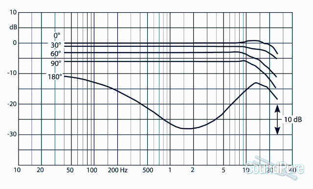 The off-axis characteristics of the 4012 Cardioid Microphone are totally linear, a unique quality which has taken a lot of attention to obtain. So any leakage that occurs from off-axis sound sources is still a faithful reproduction of these sounds, though attenuated according to the true first order cardioid pick-up pattern.