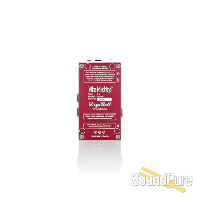 The Vibe Machine™ series – the world’s first smallest vibe pedal. Even in its little box it retains almost all the features of the classic Univibe – small in size, big on sound! When you switch the Vibe Machine on, your guitar melts into a swirling three dimensional space inhabited by chewy vibe harmonics and textures. It’s all here, from shimmering liquid trebles to throbbing pulse-like waves of bass; a sonic force of beauty that tears down the walls around you!