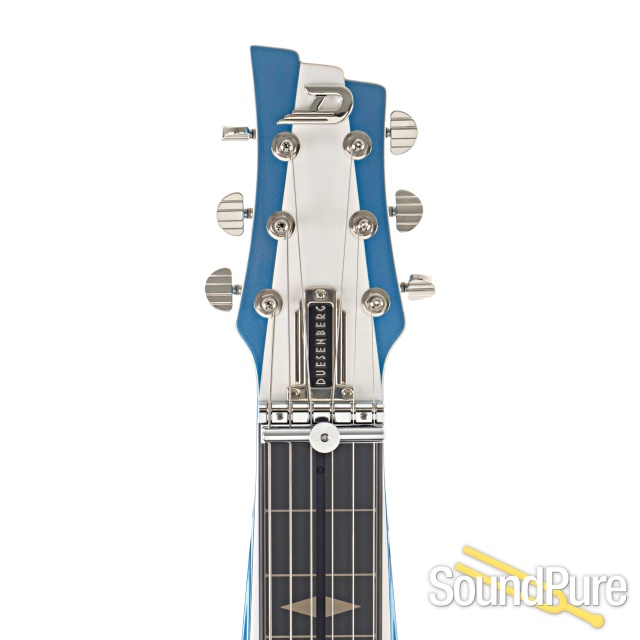 In a unique way Dieter Goelsdorf's Duesenberg design consolidates guitar construction, features and sounds which have written music history. The art deco style design of headstock, pickguard and metal components gives Duesenberg its own eye-catching look, while the body design bases on the old traditional Jazz guitars like being built from the 40s in Europe and in the USA. These design elements are combined with the best possible electric guitar construction values of the 50s: Grand Vintage Alnico pickups, classical Fender scale length plus a Gibson-like fingerboard radius. Most of the vintage-style tailpieces, bridges, tremolos, pickups and controls come with greatly improved details. The light weight plus comfortable position of controls of these stage and studio guitars provide a distinctive playing performance and handling for the most demanding player.
