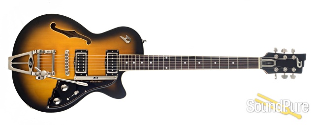 The distinctive arched spruce top and elegant flamed maple arched back has elevated the TV to one of the finest guitars in the world. Even being such a versatile instrument, it always retains its discreet character and enriches every type or style of music with its distinct Duesenberg sound. It will remind you of the time when Rock & Roll was still young.