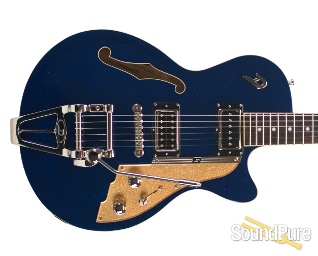 In a unique way Dieter Goelsdorf's Duesenberg design consolidates guitar construction, features and sounds which have written music history. The art deco style design of headstock, pickguard and metal components gives Duesenberg its own eye-catching look, while the body design bases on the old traditional Jazz guitars like being built from the 40s in Europe and in the USA. These design elements are combined with the best possible electric guitar construction values of the 50s: Grand Vintage Alnico pickups, classical Fender scale length plus a Gibson-like fingerboard radius. Most of the vintage-style tailpieces, bridges, tremolos, pickups and controls come with greatly improved details. The light weight plus comfortable position of controls of these stage and studio guitars provide a distinctive playing performance and handling for the most demanding player.