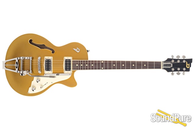 In a unique way Dieter Goelsdorf's Duesenberg design consolidates guitar construction, features and sounds which have written music history. The art deco style design of headstock, pickguard and metal components gives Duesenberg its own eye-catching look, while the body design bases on the old traditional Jazz guitars like being built from the 40s in Europe and in the USA. These design elements are combined with the best possible electric guitar construction values of the 50s: Grand Vintage Alnico pickups, classical Fender scale length plus a Gibson-like fingerboard radius. Most of the vintage-style tailpieces, bridges, tremolos, pickups and controls come with greatly improved details. The light weight plus comfortable position of controls of these stage and studio guitars provide a distinctive playing performance and handling for the most demanding player.