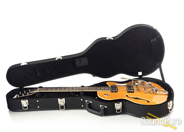 Very cool, deep transparent orange finish on this Duesy of a guitar.