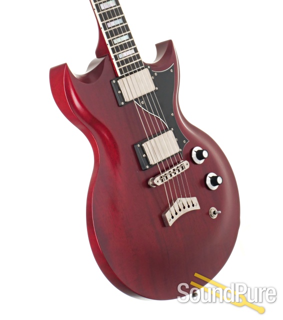 Dive into the dark majesty of this Dunable Minotaur, a magnificent six-string with the heart of mahogany and a strikingly sleek Transparent Red finish! This axe is more than just an instrument; it's a solid, superb sound investment, crafted for the serious player. Featuring a rich ebony fingerboard and shimmering Pearl Block inlays, its Nickel Hardware and Grover tuners ensure rock-solid stability. The custom, covered Slugwolf pickups deliver a powerful yet articulate punch, perfect for conquering any stage. Weighing in at a balanced 8lbs 2oz, this Minotaur is an absolutely phenomenal, expertly-built guitar, ready to roar!