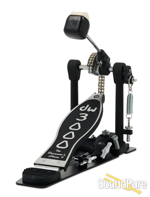 The DW Bass Drum Pedal DWCP3000 3000 Series is the perfect kick pedal for those players looking for a high-quality double chain drive pedal without breaking the bank!! DW Bass Drum Pedal DWCP3000 3000 Series combines rock-solid reliability with an incredibly affordable price tag. You're going to love the feel of this pedal. Dual-chain turbo drive and a bearing Spring rocker assembly give the DW Bass Drum Pedal DWCP3000 3000 Series the kind of response and recovery you demand, and you can count on its heavy-duty all-metal construction, night after night. Factor in DW's 101 2-way beater, and you know you'll get the sound and feel that you need from the DW Bass Drum Pedal DWCP3000 3000 Series. The Dual Adjustable Toe Clamp ensures the pedal and drum stay connected (convenient clip with Drum Key also included), while the Steel Base Plate Provides a sturdy foundation and insures nonskid play on carpet and other flooring surfaces via adjustable spikes and Velcro.