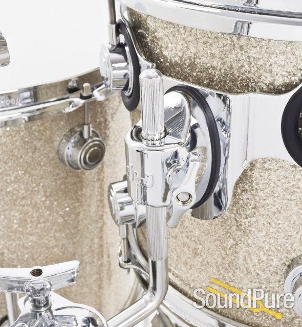 It also features DW’s patented STM (suspension tom mount) system, which allows drums to vibrate independently, allowing maximum resonance while securely holding the drum in place. Because there are no washers or grommets inhibiting the lug rod receiver, choking is reduced and tuning is as easy as ever. To give drummers even more control over their sound, DW created its patented True-Pitch rod system. The rods feature 5mm threads rather than the 12/24 that’s standard on most other drums. To compare, there is 1 thread every 0.8mm on True-Pitch® rods (about 20% more threads), versus 1 thread every 1.05mm on most other drums. The result is a more exacting tuning process.