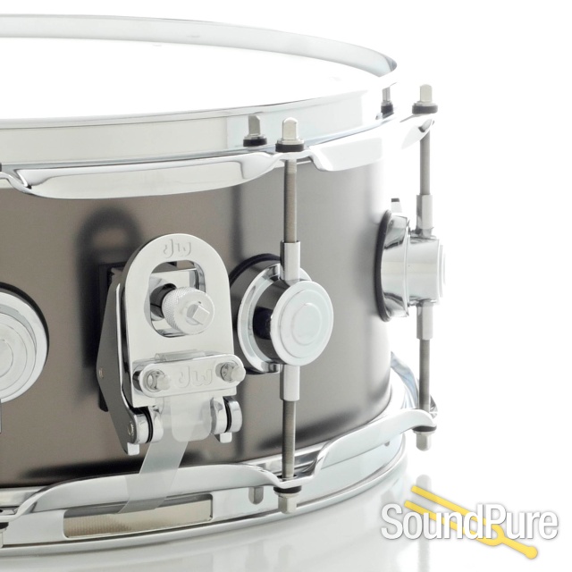 This DW black satin over brass snare drum is one of the essential sounds any drummer should have. The 1mm rolled brass shell makes for a great live or studio snare. Tuned high, this drum offers great articulation, sensitivity, and cut. The lower tunings offer a fat and wet sound without loss of responsiveness. Suitable for a variety of musical applications, it offers that sought-after "classic studio brass snare sound" for rock, jazz and beyond; offering brightness and cut with a decidedly metallic tonal characteristic.