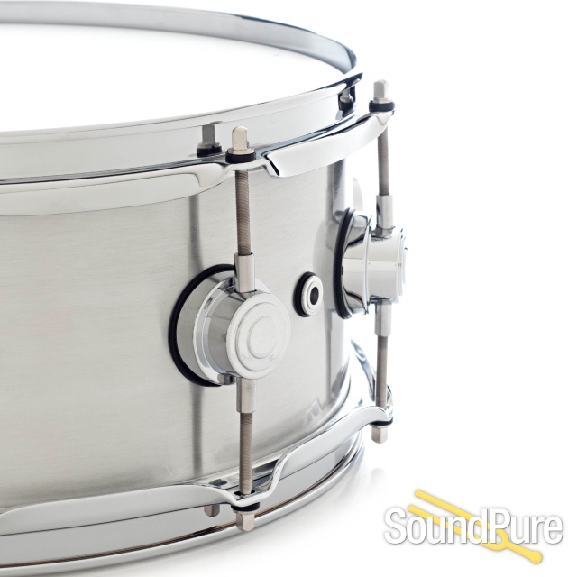 This snare is designed to be a “workhorse,” making it useful for live or recording playing situations. The thin aluminum lends itself to a crisp and sensitive articulation in the medium and high tensions while retaining definition in the lower ranges. DW's True Pitch tension rods combined with the 10 lug configuration affords the player greater control over the tuning to a very granular level.