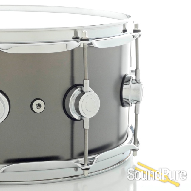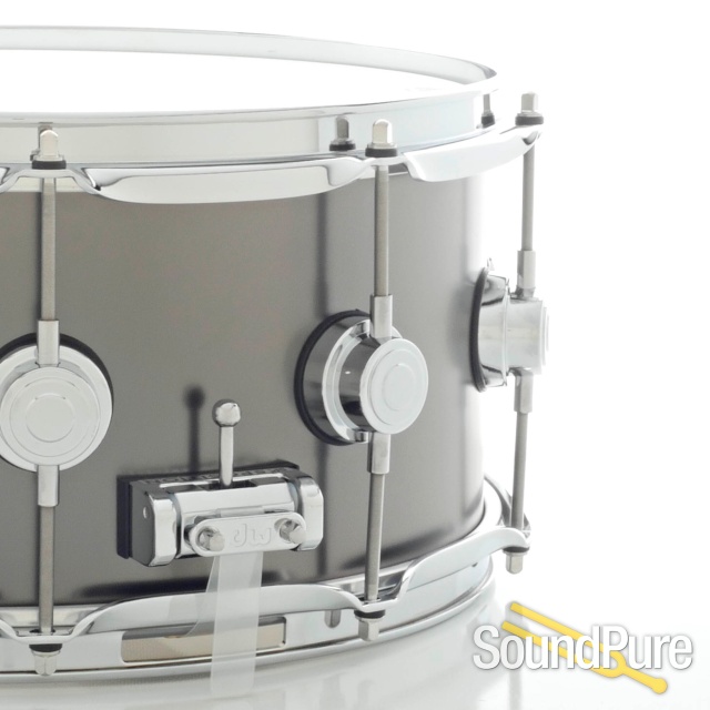 The DW Collector's Series Black Nickel over Brass 6.5" x 14" snare drum sports a thin, industry-standard 1mm rolled brass shell, and is plated with stealthy-looking black nickel. This workhorse snare drum gives you classic "studio brass snare sound," with the brightness and definitive cut you need for a variety of musical genres, including rock, jazz, and fusion. This snare is available for SoundPure's Try-Before-You-Buy Program, so if you want to hear how it sounds in your hands, shoot us an email at Drums@SoundPure.com or call us anytime at 919.682.5552. Thanks for watching!