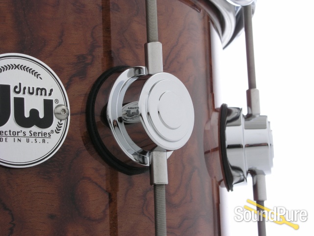 The DW Exotic Series snare drums have been an affordable option for drummers that are looking for an exquisite looking and sounding drum in one nice package. In the medium tuning range, we found this snare to have plenty of body and bite. At the low end of the range, this drum has the fat and sag of a '70s-era drum sound, but with a modern polish. In the high tuning range, the drum offers great crack and projection without sacrificing body. With the 3-position butt plate, players are able to dial in the right snare setting with the flip of a switch, instead of painstakingly having to adjust the dial - a feature we really love.