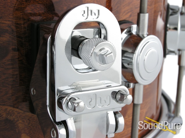 DW has been one of the go-to drums for professionals and working with this drum we can understand why. In the medium tuning range, this snare has plenty of body and bite, while at the low end of the range, this drum has the fatness of a '70s-era drum sound, but with a modern polish. In the high-tuning range, the drum excels and offers great crack and projection without sacrificing the body. With the 3-position butt plate, players are able to dial in the right snare setting with the flip of a switch, instead of painstakingly having to adjust the dial - a feature we really love.