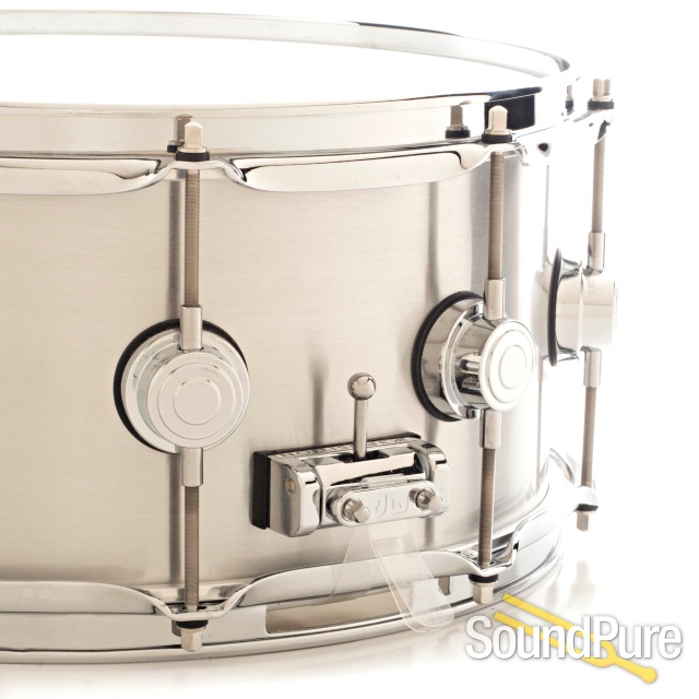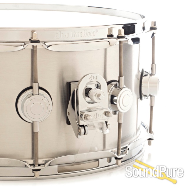 This snare is designed to be a “workhorse,” making it useful for live or recording playing situations. The thin aluminum lends itself to a crisp and sensitive articulation in the medium and high tensions while retaining definition in the lower ranges. DW's True Pitch tension rods combined with the 10 lug configuration affords the player greater control over the tuning to a very granular level.