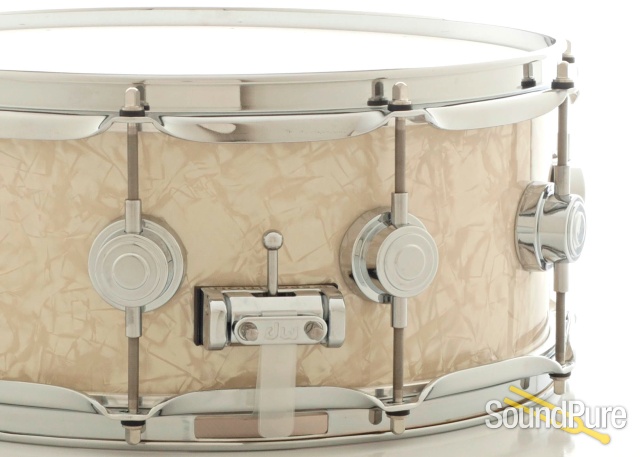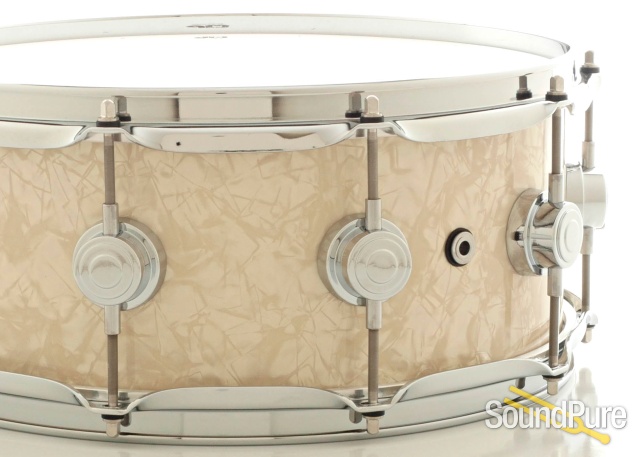 DW's flagship line, the Collector’s Series, are the original US-made custom drums. This drum features a maple/mahogany with a Vintage Marine Pearl wrap. Shell Note C