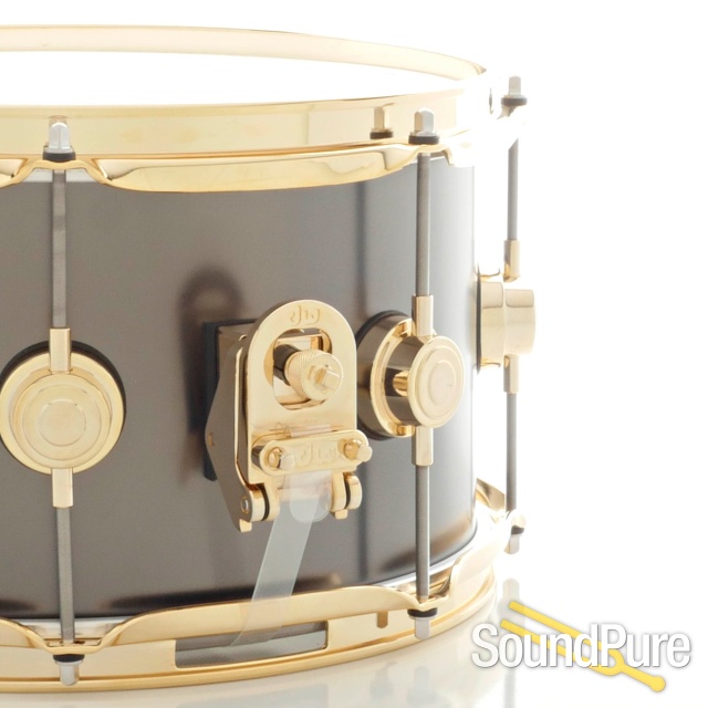 Utilizing a thin industry-standard 1mm shell, and plated with sleek black satin, the Collector's Series Black Satin over Brass is a versatile workhorse snare. Suitable for a variety of musical applications, it offers that sought-after "classic studio brass snare sound" for Rock, Jazz, and beyond; offering brightness and cut with a decidedly metallic tonal characteristic. Customize it with any available DW Custom Shop drum hardware color.
