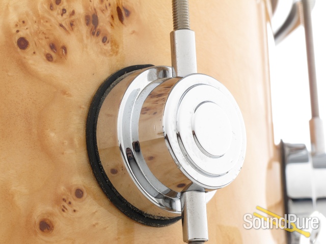 This used drum features a gorgeous Mapa Burl veneer finished with a natural gloss. Maple VLT Shell with a Timbre not of B