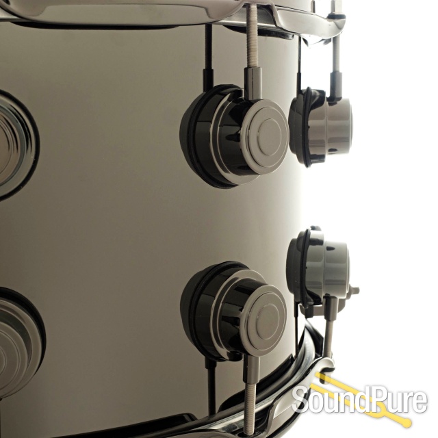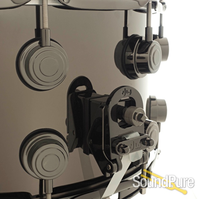 This DW black nickel over brass snare drum is one of the essential sounds any drummer should have. The 1mm rolled brass shell makes for a great live or studio snare. Tuned high, this drum offers great articulation, sensitivity and cut. The lower tunings offer a fat and wet sound without loss of responsivness. Suitable for a variety of musical applications, it offers that sought-after "classic studio brass snare sound" for rock, jazz and beyond; offering brightness and cut with a decidedly metallic tonal characteristic. This snare is available for SoundPure's Try-Before-You-Buy Program, so if you want to hear how it sounds in your hands, shoot us an email to Drums@SoundPure.com or call us anytime at 919.682.5552. Thanks for watching!
