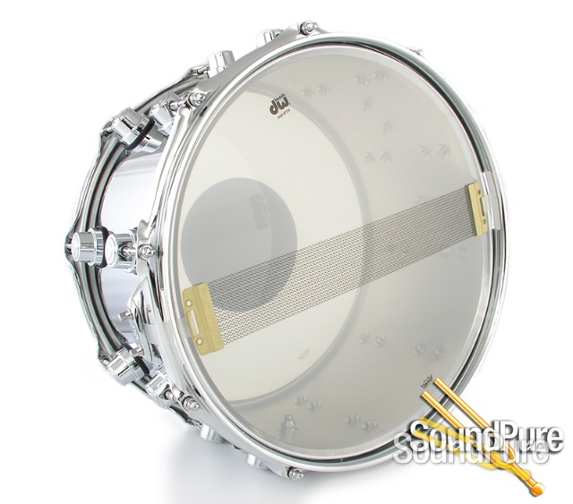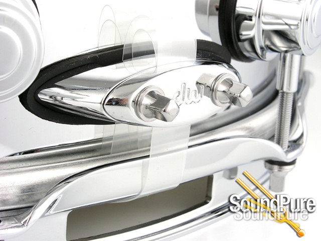 This DW Performance steel sheel snare drum is a thing of beauty. The 1mm beadless steel shell is sleek and polished. The 8x14 shell provides incredible volume and sensitivity. It has some of the ping of brass, but with a decidedly more metallic quality with no unwanted overtones, just plenty of cut and crack.