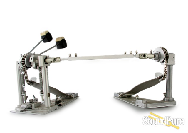 Limited Edition Number 393 of only 500 made. Titanium Double bass, with case , and accessories. These pedals were made with a laser cut Titanium foot plate while the production models used a aluminum footplate and cast parts. Very hard to find one for sale these days. This one is in really good used condition. Functioning perfectly and ready to rock. Includes Master and Slave pedal, Aluminum heel plates, and case. No certificate.