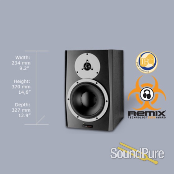 full analog active nearfield monitor - 8” neodymium magnet woofer and 1.1” soft dome neodymium tweeter.