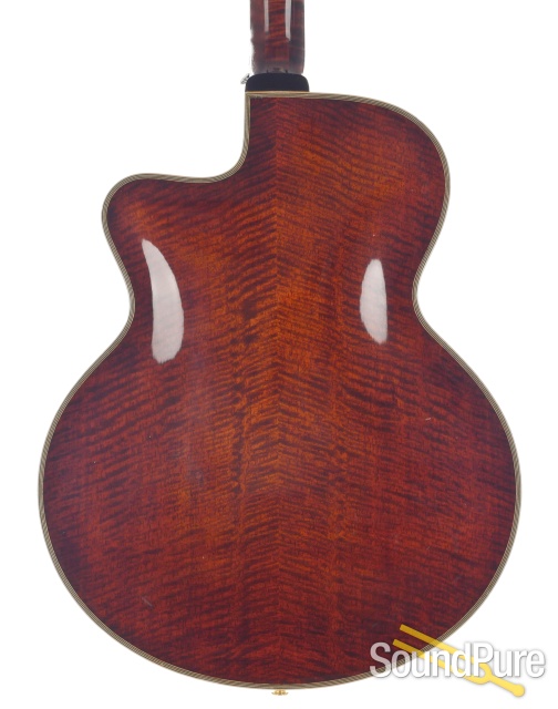 Eastman Guitars are fine handmade instruments at very reasonable prices. Their archtops and flat tops are made with solid, hand-carved tops, backs, and sides. They offer many of the traditional archtop styles in their Uptown series with options of different woods, dimensions, and pickups. The Thinline series, the El Rey and the Jon Pisano signature line offer some great alternatives, and feature the same kinds of customizable options. Eastman Uptown Deluxe series archtops are custom shop pieces with select AAA grade tone woods, wood binding with inlaid purfilng, and five piece necks.